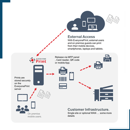 EVERYONE PRINT es un software Danés que permite publicar colas de impresión en la nube de manera rápida, sencilla y económica. Es la solución idónea para integrar medios de impresión seguros en corporativos e instituciones educativas.