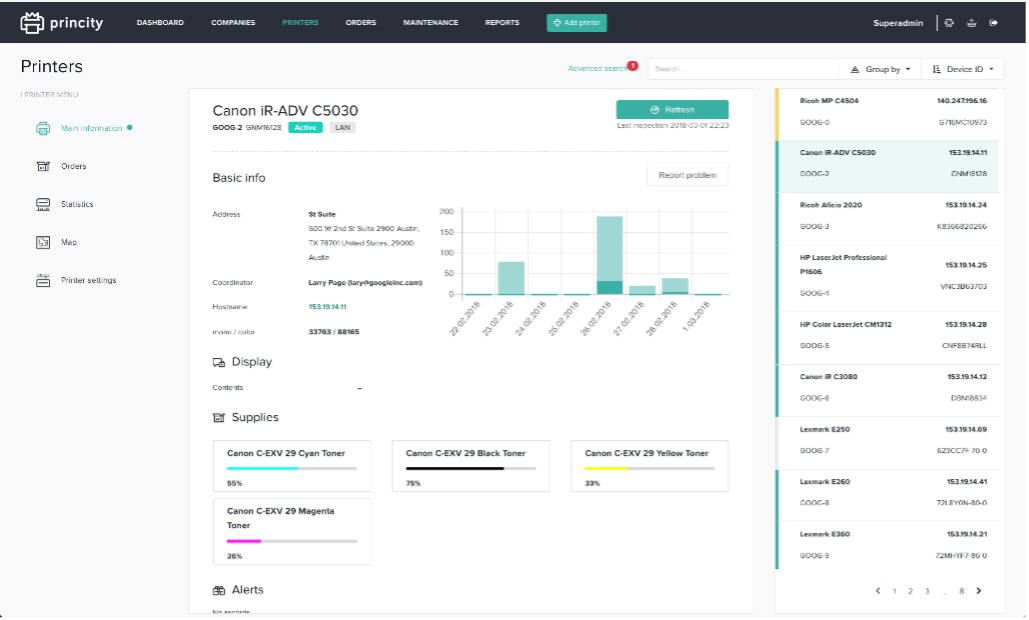 PRINTCITY es un software Polaco que permite el monitoreo remoto de los dispositivos a través de la nube. Es la solución necesaria para los servicios administrados de impresión.